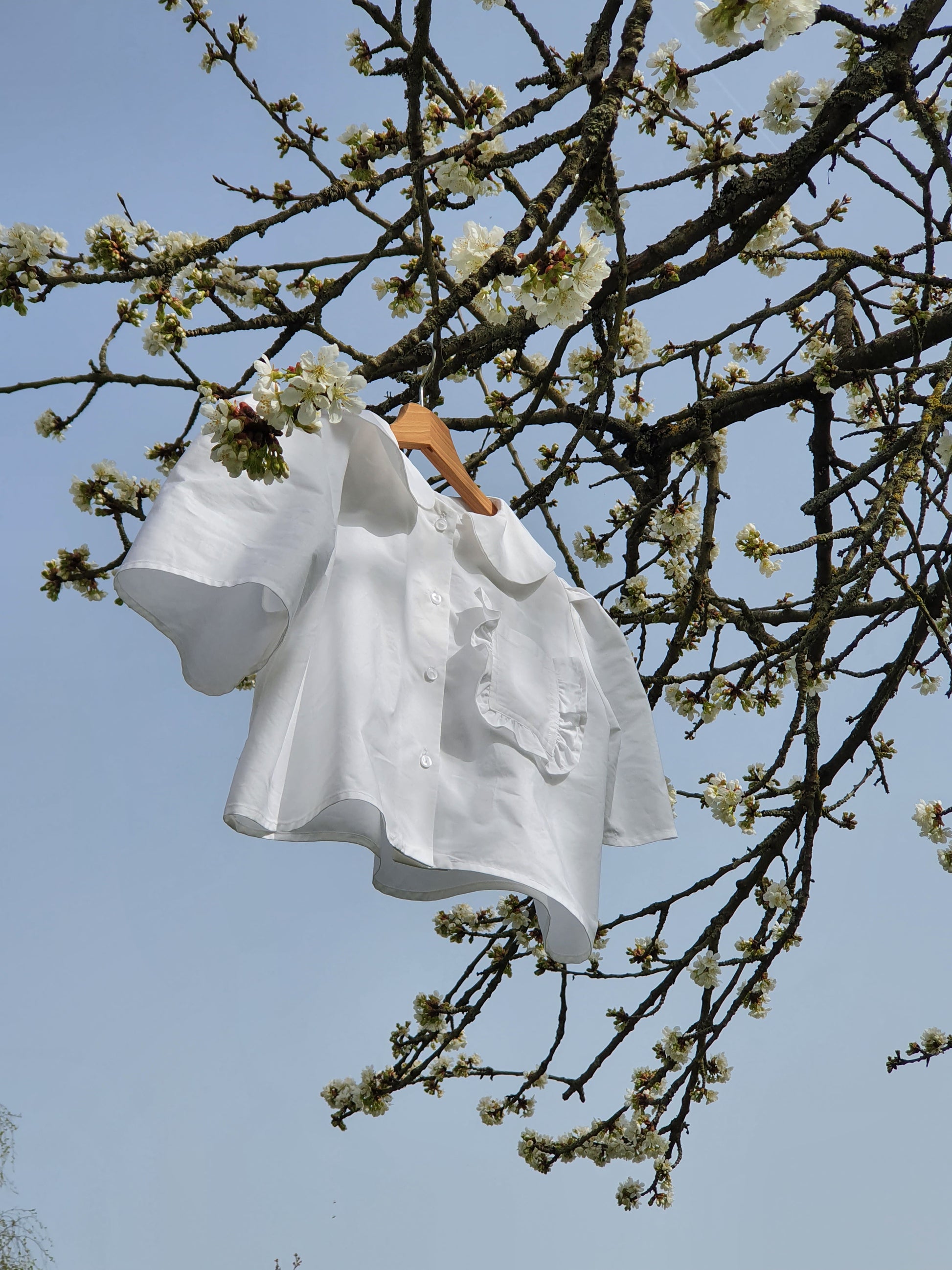 Timeless BABY GIGI, with its claudine collar and puffed sleeves. Pearly buttons add a touch of elegance