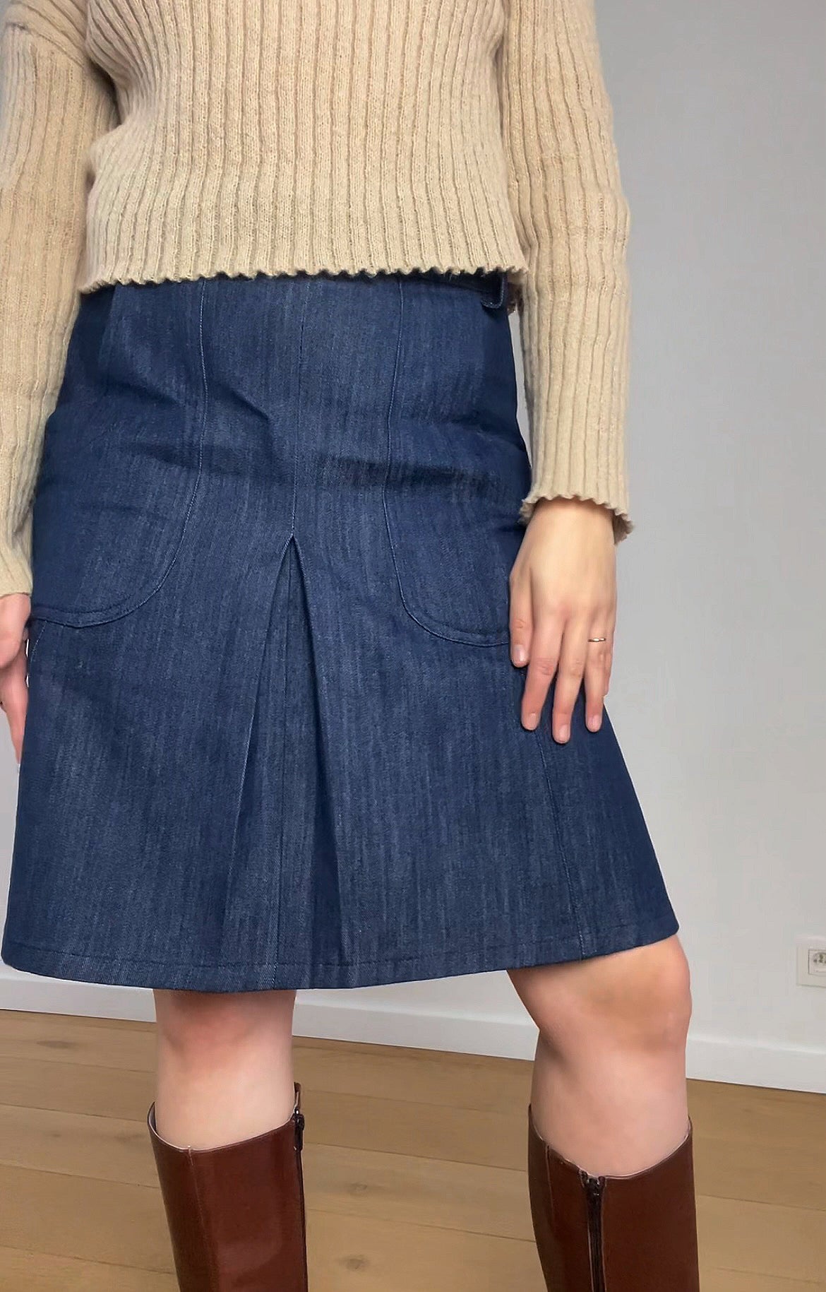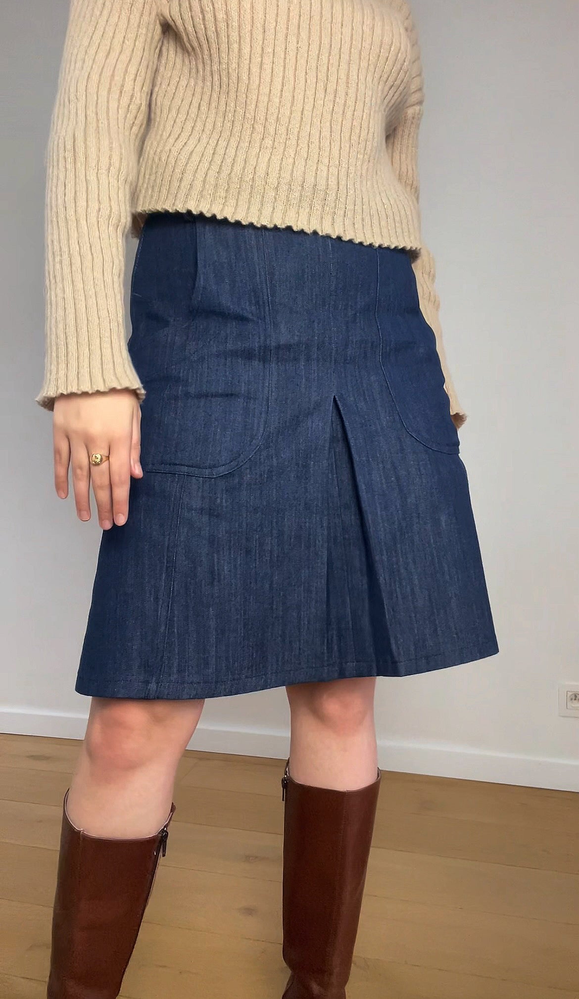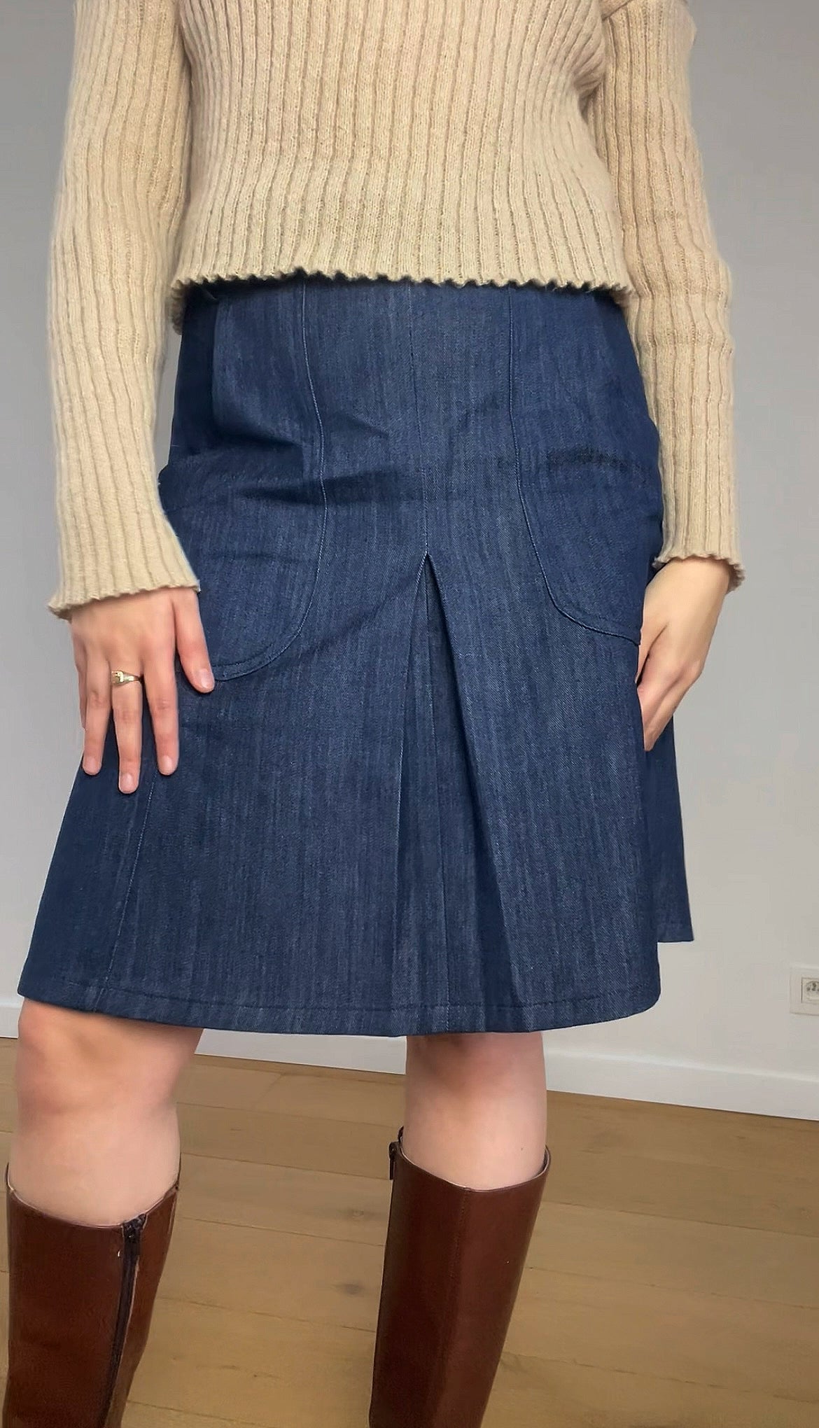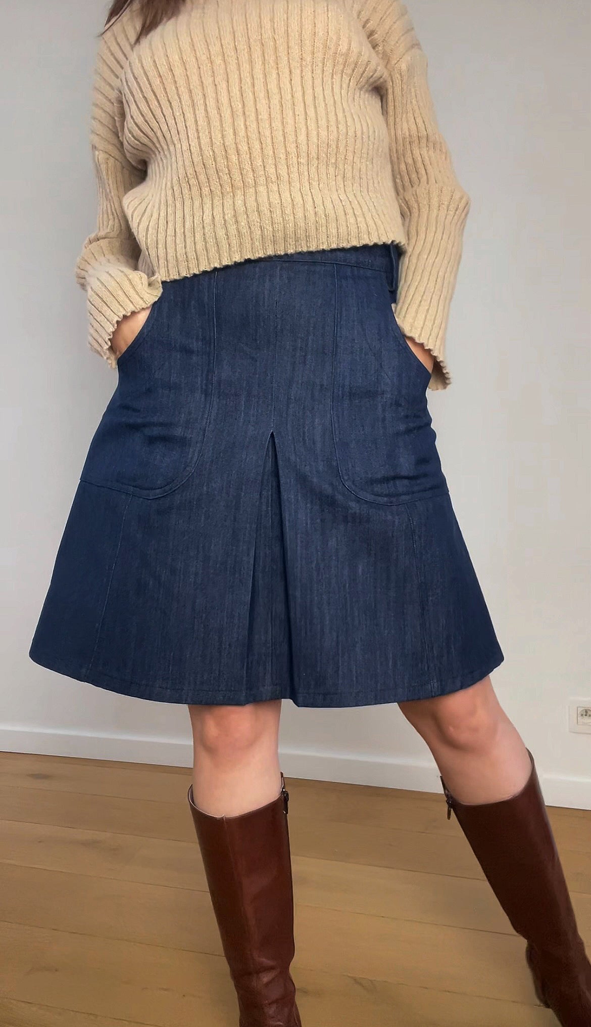 Timeless elegance with FREDDIE skirt. Its box pleat and two patch pockets highlight your silhouette. Perfect for any occasion.