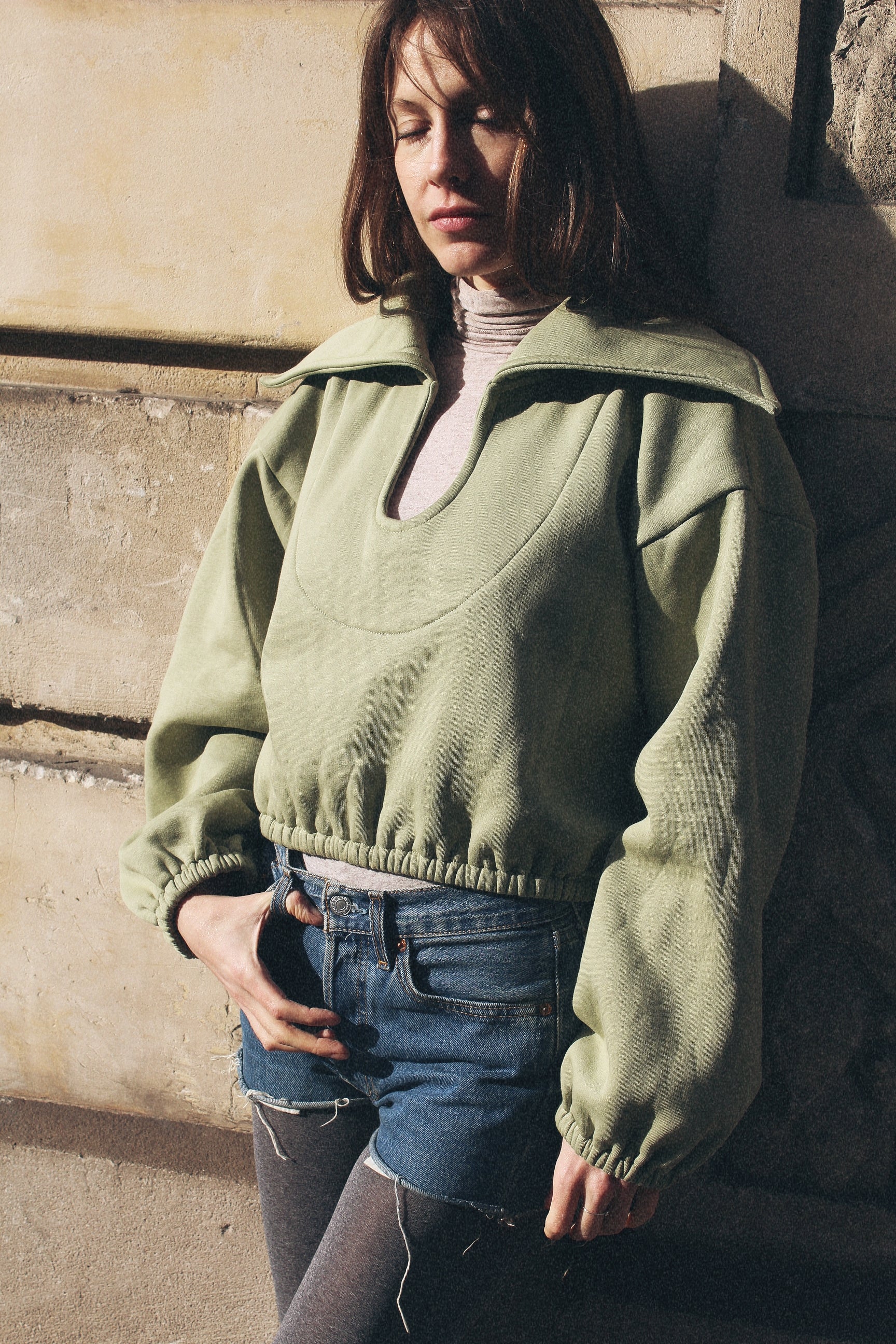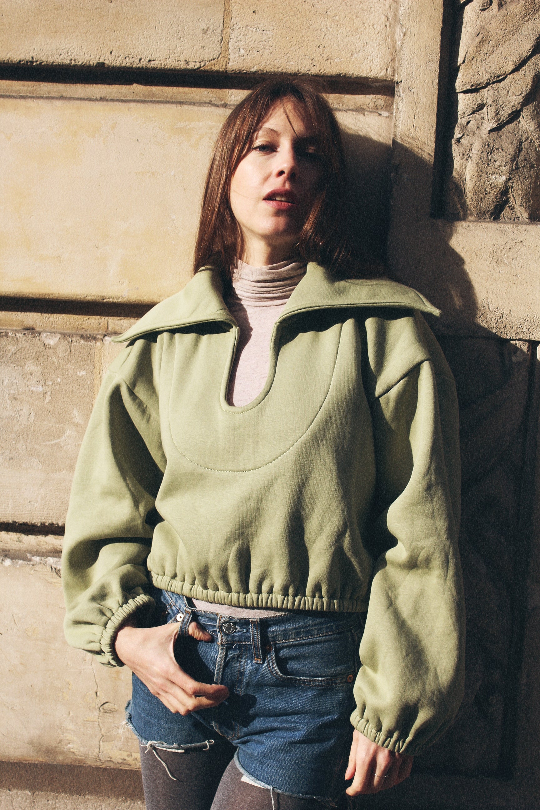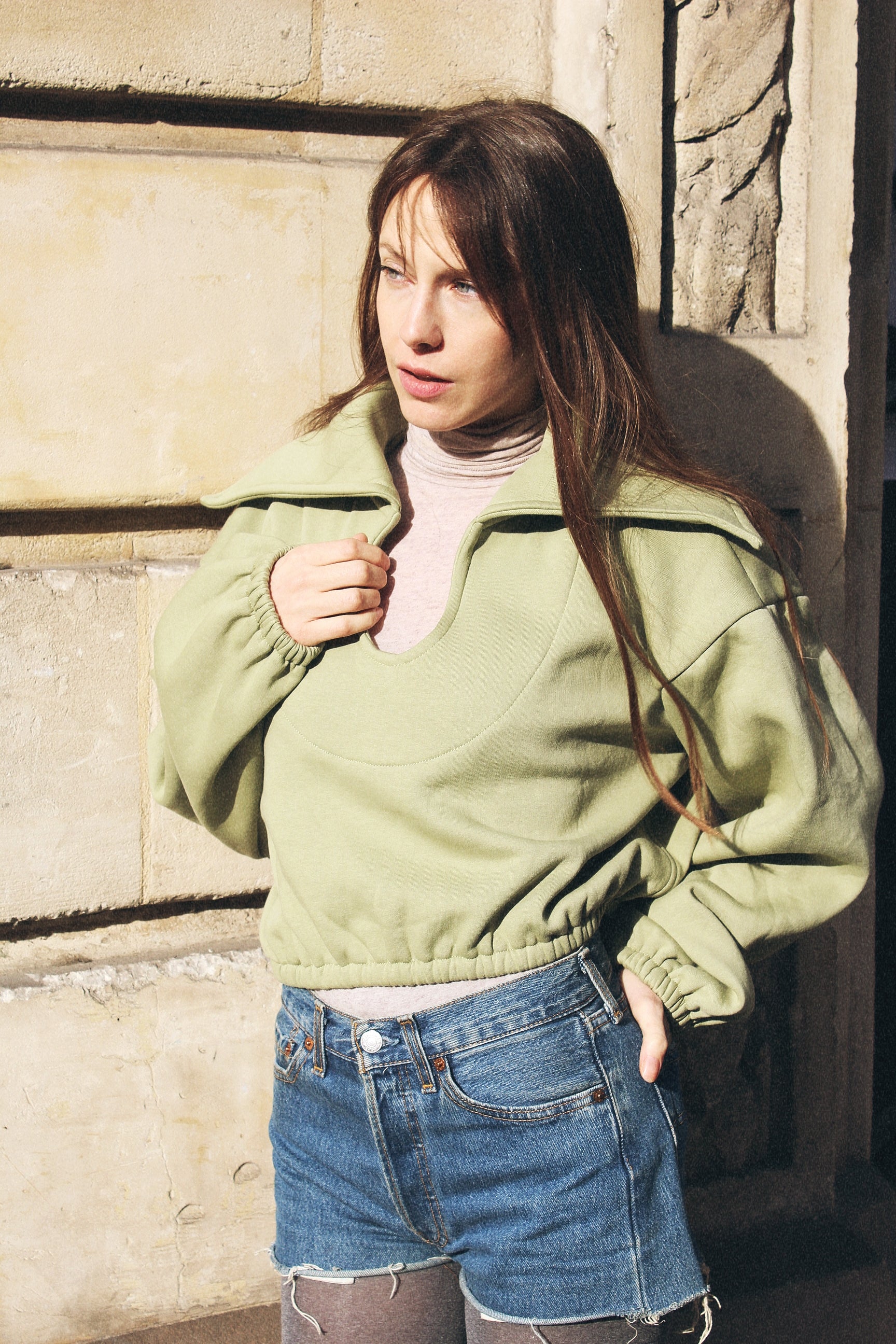 GIL sweat is a perfect choice to complete your wardrobe with its original large collar. Versatile and stylish, this piece can be worn with everything, giving you a casual yet sophisticated look.